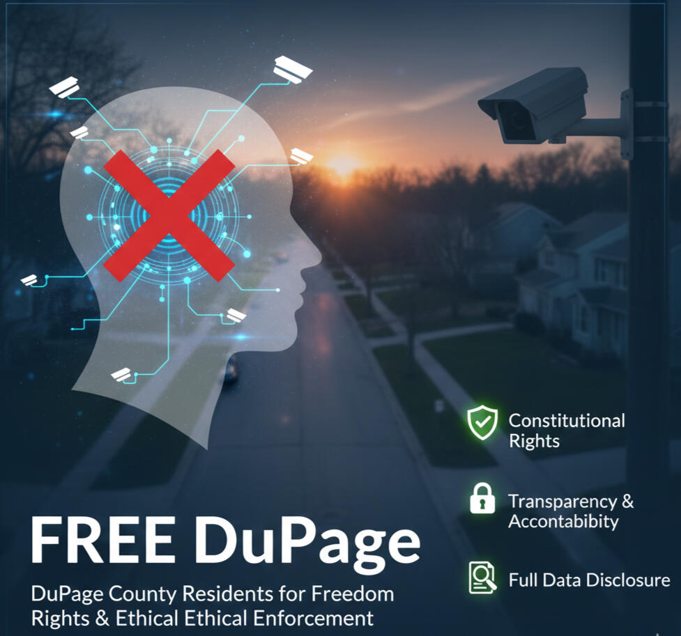 FREE DuPage is a non‑partisan, community‑led advocacy group. We support public safety solutions that respect constitutional rights, privacy, and equal protection under the law.